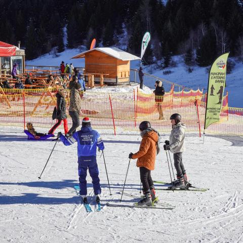 Alpe di Siusi, vlak naast Val Gardena, is een van de meest toegankelijke skigebieden voor gezinnen. De pistes zijn lang, vlak en goed voorbereid, en er zijn meerdere kinderpistes en sleehellingen. In Compatsch vind je een grote kinderweide met eigen liften. Ook zijn er winterwandelroutes geschikt voor kinderwagens (bron: dolomitisuperski.com, 2025).